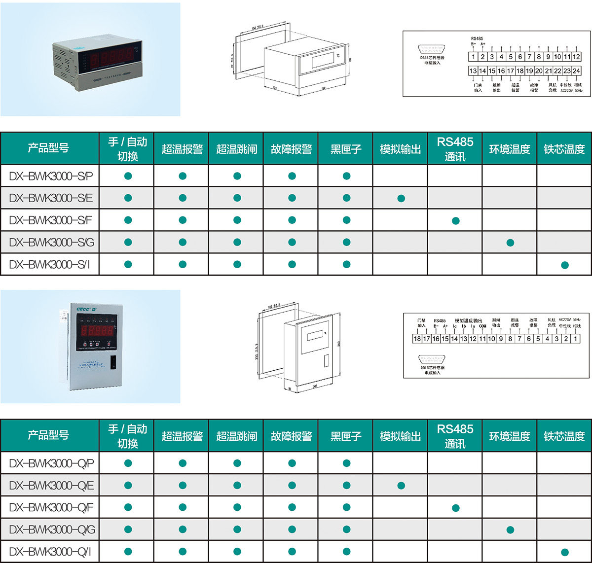 DX-BWK系列變壓器溫度控制器是專為干式變壓器安全運(yùn)行設(shè)計(jì)的一種智能控制器。該控制器采用單片機(jī)為控制核心,利用預(yù)埋在干式變壓器繞組或鐵心中的鉑熱電阻來(lái)檢測(cè)變壓器的溫度,并能根據(jù)溫升自動(dòng)控制冷卻風(fēng)機(jī)的啟停、超溫報(bào)警直至超高溫跳閘,以保證干式變壓器的安全運(yùn)行,從而延長(zhǎng)變壓器的工作壽命。該控制器結(jié)構(gòu)簡(jiǎn)單,運(yùn)行可靠,抗干擾能力強(qiáng),同時(shí)還具有“黑匣子”功能,可以記錄停電前三個(gè)繞組線包的溫度及本機(jī)的工作狀態(tài)。